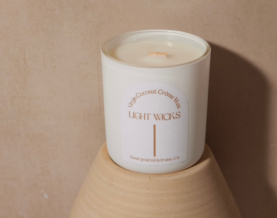 We proudly use a virgin coconut soy wax blend, a sustainable and renewable source that does not produce harmful chemicals while burning, to provide a clean and long lasting burn and complimented with the aesthetic of natural wood from a wooden wick for a soft crackling sound. Our candles are non-toxic and do not contain parabens, phthalates, sulfates, or synthetic dyes.